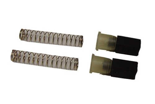 Carbon brush and brush spring assembly, set of two. For Oster universal motor clippers (Classic 76, A5, Turbo 111) manufactured after June 1985. Catalog Number 917-17. service No. 62106-002.